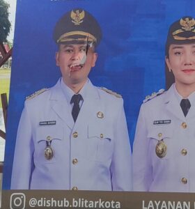 Blitar – Banner informasi tarif parkir di Alun-Alun Kota Blitar diduga dirusak orang tidak bertanggungjawab. Bagian foto walikota dan wakil walikota Blitar di banner itu juga dirusak dan dilubangi. Dishub Kota Blitar memastikan segera mengecek CCTV di area itu.