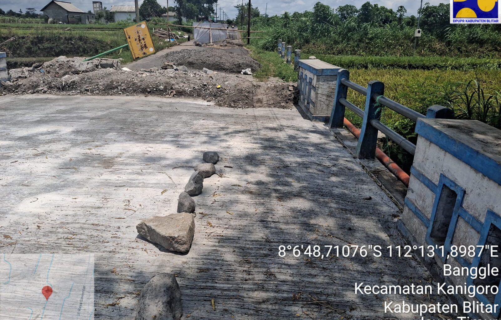 Hamdan Zulkifli, Kepala Bidang Bina Marga Dinas Pekerjaan Umum & Penataan Ruang (PUPR) Kabupaten Blitar mengatakan pengerjaan jembatan penghubung Desa Banggle & Desa Sawentar sudah selesai proses pengecorannya.
