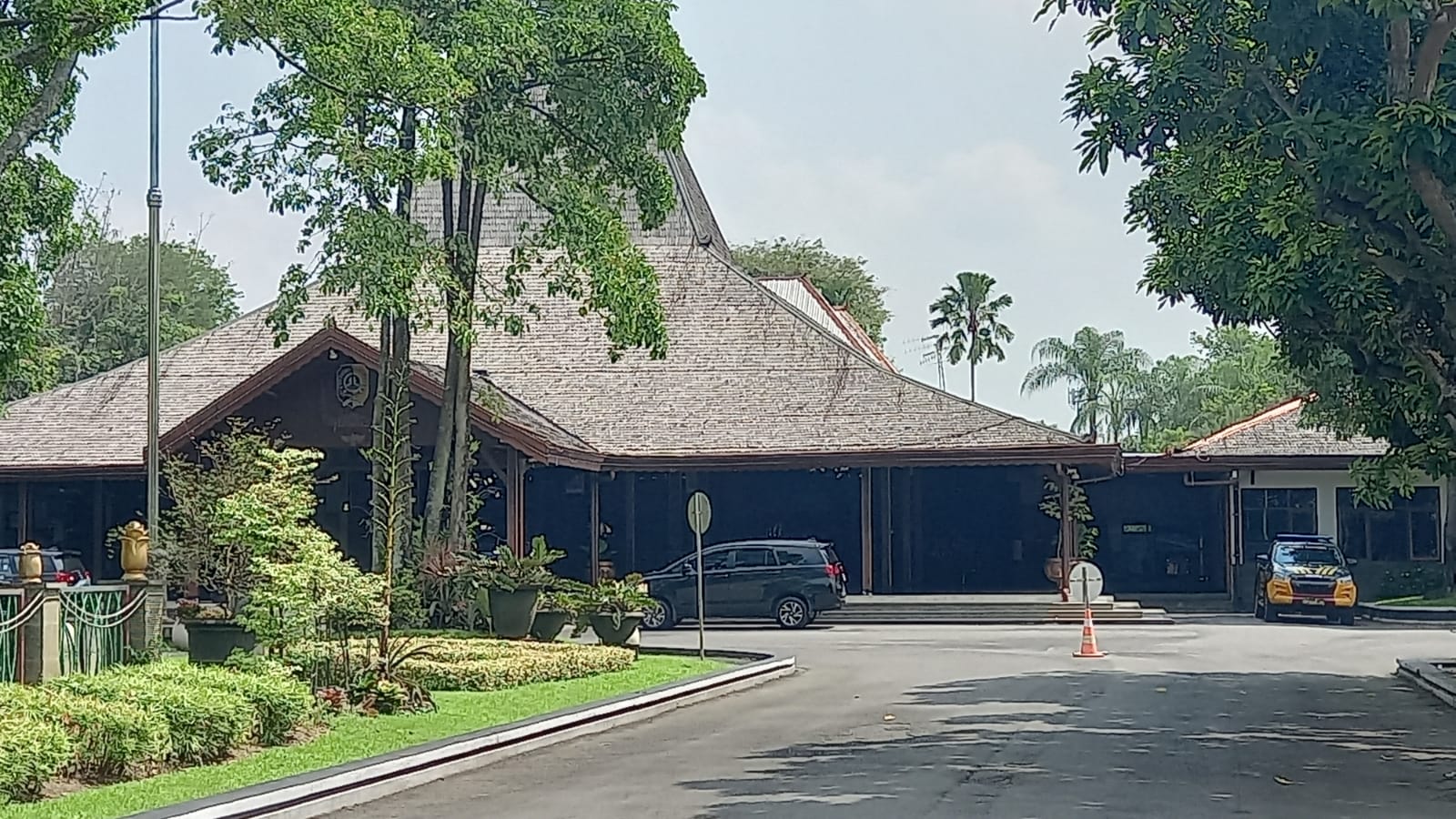 Sementata dari pantuan reporter siang ini, ada 2 mobil warna hitam terparkir di depan lobi & satu mobil lalu lalang keluar masuk pendopo.(Ang/Lky)
