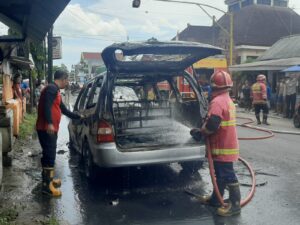 Tulungagung – Diduga konsleting listrik, sebuah mobil ludes terbakar di depan Pasar Desa Bendilwungu Sumbergempol Tulungagung pada Sabtu 3 Januari 2026 siang ini.